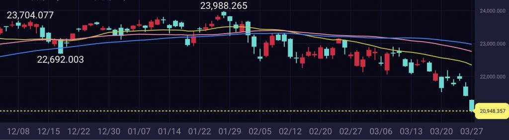 2026年3月27日(金)の日経平均は、マイナス230.58円(マイナス0.43%)と下落して終値は53,373.07円でした。3月の大暴落は、3月SQまでかと思っていたのですが、それから更に乱高下しながら大きく下げています。
