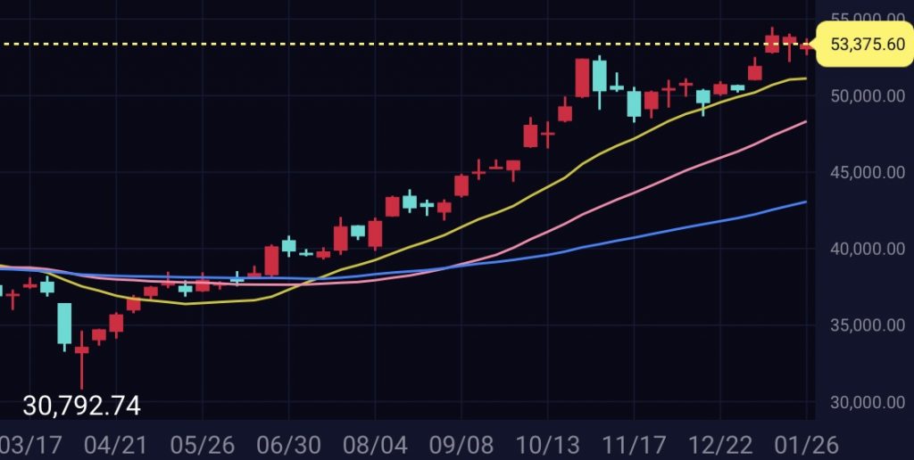 2026年1月29日(木)の日経平均は、プラス16.89円(プラス0.03%)と少し上昇して終値は53,375.60円。