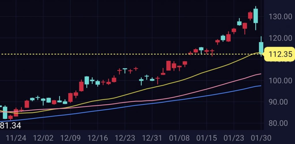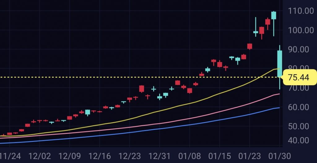 2026年1月30日(金)のアメリカ市場で、金(ゴールド、GLD)はマイナス10.14%、銀(シルバー、SLV)はマイナス28.58%と大きく下落しました。